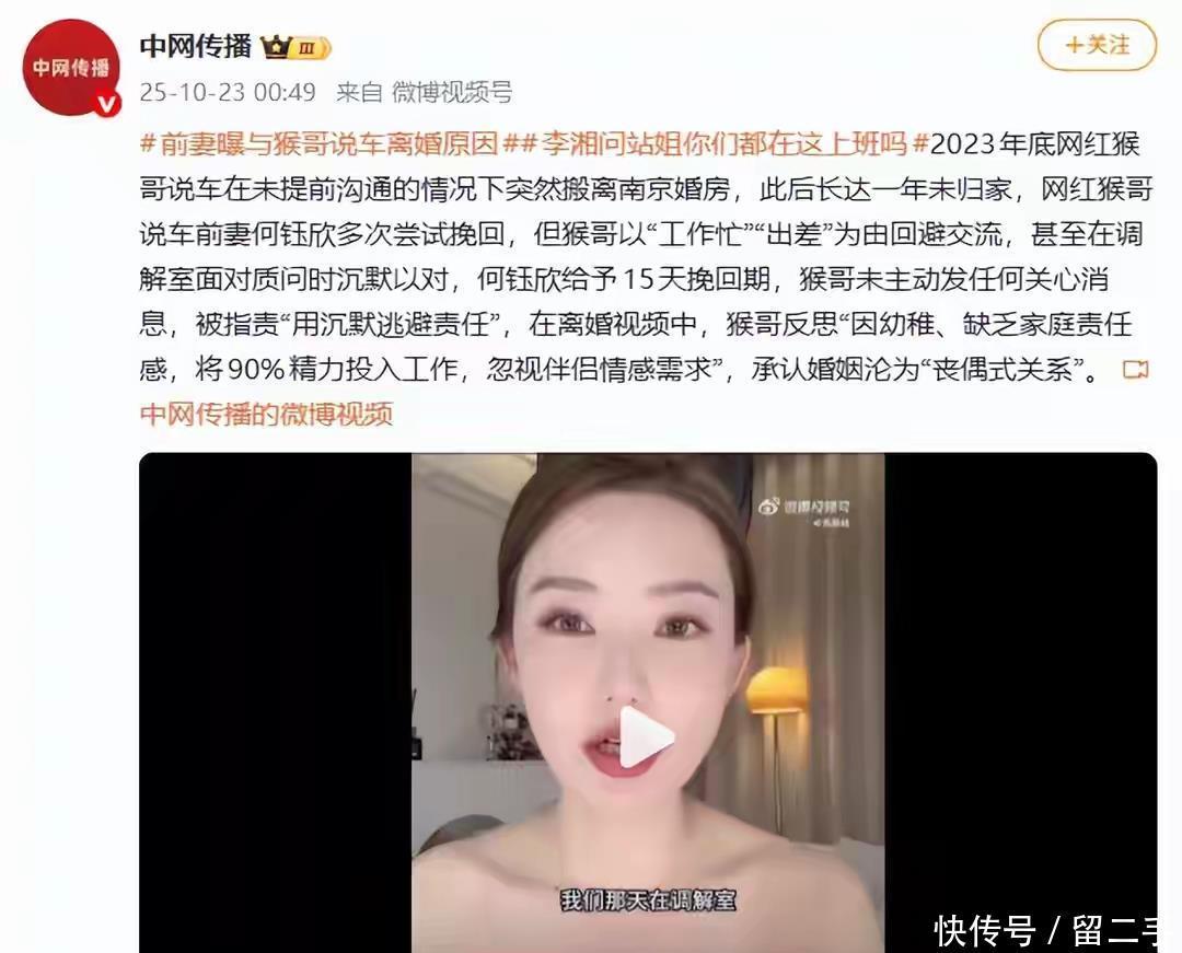 婚姻的最后阶段,两人已像陌生人一样生活。 猴哥在2023年底突然搬出家门,理由是要出去冷静,自此以后两人很少共同生活。2024年12月猴哥提出离婚,何钰欣给了15天冷静期,却始终没有等到对方的回应。 今年9月26日,两人终于在民政局办完离婚手续。